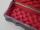 内側は落ち着いた赤のシルクサテンのクッションで覆われており、