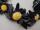 黒いマーガレットの布花が11輪が束ねられたリースです。