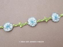 【アンティーク 大きな薔薇のロココトリム 水色 金糸の縁取り ロココリボン[AM12708]】