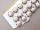 9〜10mmサイズのオフホワイトのシルク製ボタンで、側面に紫色の柄が見られます。