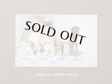 おめかしする子猫のポストカードです。