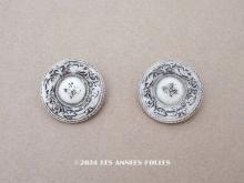 【アンティーク 鳥と草花 ガラスボタン 黒 22.5mm 2ピースのセット[AM14710]】