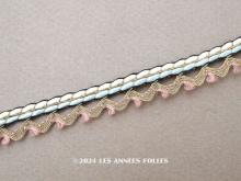 【19世紀末 アンティーク  トリム 1.6cm幅  ゴールド&白&ピンク&水色[AM14721]】