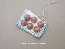 【1850年頃 アンティーク シルク製 くるみボタン 赤&ライトブラウン 10mm 6ピースのセット[AM14736]】