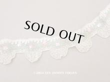 【1930年頃 アンティーク レース ピンクの花の刺繍入り 95cm[AM14819]】