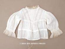 【アンティーク ドール&ベビー用 花刺繍のブラウス ホワイトワーク&レース[AV0042]】