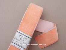 【アンティーク シルク&コットン製 幅広 ベルベットリボン サーモンピンク ダブルフェイス PON 787 N 9 COL 602[AM14615]】