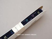 【未使用 アンティーク 花のハンドペイント ベルベットリボン ダークブルー 10m PON 6537[AM14863]】