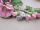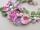 ピンクや淡いパープル、淡い青紫色のベルベットの布花、