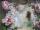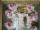 ガラスのフレームの中には可愛いピンク色の薔薇の布花で彩られています。