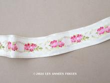 【19世紀 アンティーク シルク製 リボン ピンクの薔薇[AM15068]】