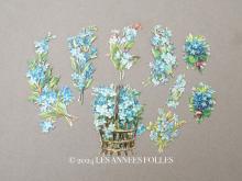 【1900年頃 アンティーク 勿忘草 ダイカットクロモ 9点のセット[AE3911]】
