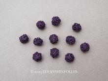 深い紫のシルク糸で編みこまれた極小のくるみボタン11ピースのセットです。