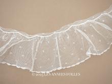 【アンティーク 幅広 フリルレース オフホワイト ドット刺繍入り チュールレース 2.5m 幅11.5cm [AM15223]】