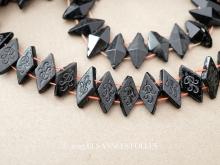 【アンティーク モノグラム入り フレンチジェット ダイヤ形 ビーズ 7.5×13mm 約40ピースのセット [AM15256]】