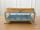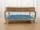 スモーキーなブルーのシルククッションと重厚な脚が印象的な、