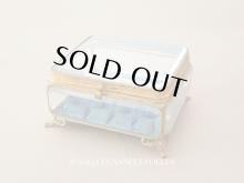 【19世紀中頃 アンティーク 大きなジュエリーケース スモーキーブルーのシルククッション 20.2×17.5cm[AB4060]】
