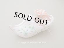 【19世紀 アンティーク 靴型 お菓子箱 パウダーピンクのシルクサテン マーガレット ハンドペイント[AB4997]】