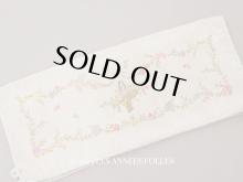 【アンティーク シルク製 花かごのリボン刺繍入り ハンキーケース ハンカチ用ポシェット フラワーバスケット[AM15589]】