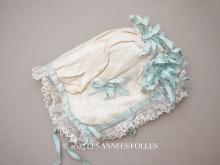【アンティーク ベビー用 ボネ 水色のシルクリボン&レース&ジャガード織シルク生地[AM15638]】