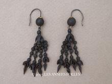 【アンティーク ヴィクトリアン モーニングジュエリー ピアス マットなフレンチジェット[AJ0190]】