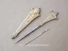 【19世紀末 アンティーク ヴェルメイユ製 薔薇模様 ニードルケース&目打ち&紐通しのセット[AM15701]】