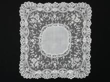【19世紀末 アンティーク 結婚式のハンカチ 薔薇模様 アプリカシオン・アングルテール (ボビンレース) [AM15771]】