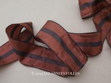 【アンティーク シルク製 薄手のリボン ライン入り ブラウン&ブラック シルクリボン [AM15835]】