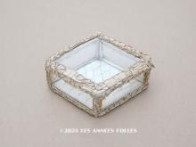 【アンティーク リボンワークのジュエリーボックス スモーキーパウダーブルー ガラスケース[AB3704]】