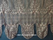 【1910年代 アンティーク  花模様の刺繍入り チュールレース 胡桃色[AM7186]】