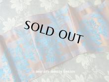 【19世紀 アンティーク シルク製 リボン ジャガード織 ブルーの花模様 1.25m [AM7264]】
