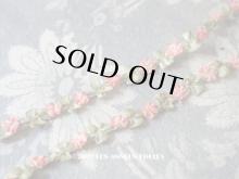 【1900年代 アンティーク シルク製 ロココトリム とても小さな朝顔 ピンクオレンジ ロココリボン 1.1m[AM7335]】