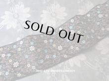 【1900年代 アンティーク シルク製 ジャガード織 リボン 花模様 142cm 黒 [AM7532]】
