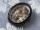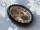 とても珍しいガラスの中に遺品が入った黒いブローチです。