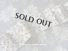 【1900年代 アンティーク シルク製 ジャガード織 リボン 花模様 113cm グレーベージュ[AM8031]】