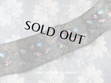 【19世紀末 アンティーク シルク製 ジャガード織 リボン 昆虫&リーフ柄 115cm [AM8032]】