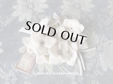 【1930年代 アンティーク ベルベットの花のコサージュ オフホワイト ラベル付 デッドストック[AM8099]】
