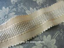 【19世紀末 アンティーク シルク製 格子の透かし柄 スカラップリボン [AM8211]】
