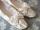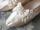 落ち着きのあるオフのワイトのシルクサテンのシューズです。