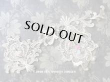 【1900年代 アンティーク 3色の薔薇のリボン刺繍入り レースモチーフ [AM8605]】
