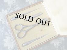 【1930年代 アンティーク シルバー製 リボン柄のソーイングセット 裁縫道具[AM8657]】