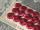 とても珍しい、ラズベリー色の2色使いが美しいボタンです。