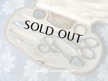 【1900年代 アンティーク シルバー製 リボン柄のソーイングセット 裁縫道具[AM8810]】