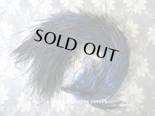 ブラックとブルーの羽が混ざった珍しいモデルで、柔らかな質感のフェザーです。