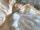 淡いベージュのフリルリボンで縁取られたロマンチックなクラヴァットです。