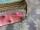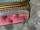 スモーキーな赤のクッションの表面は少し擦れている部分が見られますが、