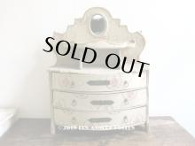 【【セール対象外】1910年代 アンティーク カルトナージュチェスト  薔薇のブーケのメダイヨン  ミラー付[AI0581]】