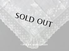 【新品同様 19世紀 アンティーク 結婚式のハンカチ 王冠とモノグラムのホワイトワーク & ヴァランシエンヌレース[AM9633]】