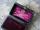 鮮やかなパープルのシルクサテン地に印刷されています。