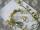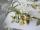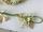 発色の良いグリーンとオフホワイトのワックスフラワーが映える、